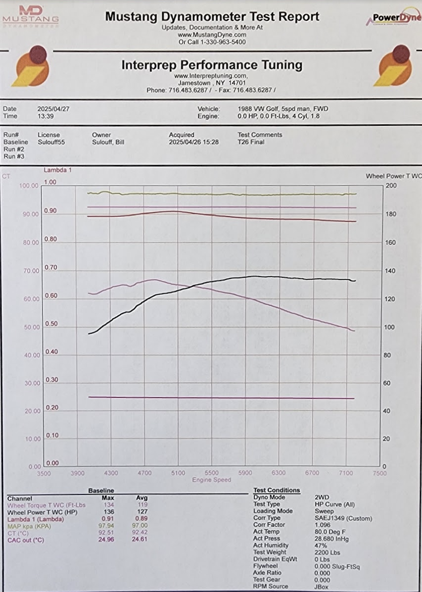 The engine has been developed to the SCCA H Production – Level 2 ruleset. The rules allow for very specific modifications to major components in addition to many ancillary additions. While limited in scope, the changes can make significant improvements in output. Currently (2025) the engine is making approximately 136 Horsepower and 127 lb-ft of torque at the wheels. This roughly equates to over 150 crank HP. This is on par to run at the front with other nationally competitive H Prod cars.